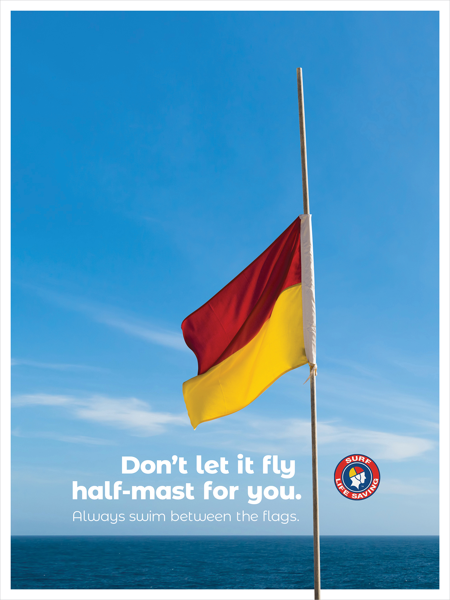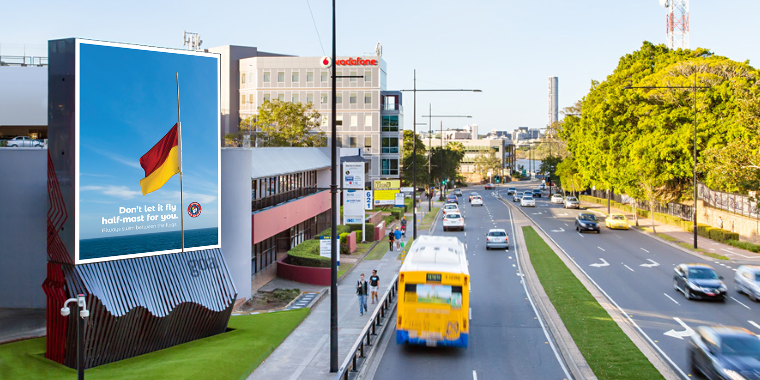 The iconic image of the life saver’s flag and the powerful image of a flag at half-mast were combined to create an out-oh-home campaign that reminds locals and visitors alike of the importance our surf lifesavers and why we should always “swim between the flags”.