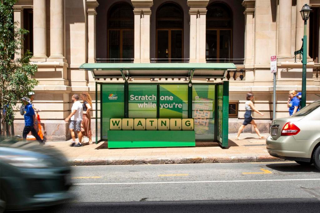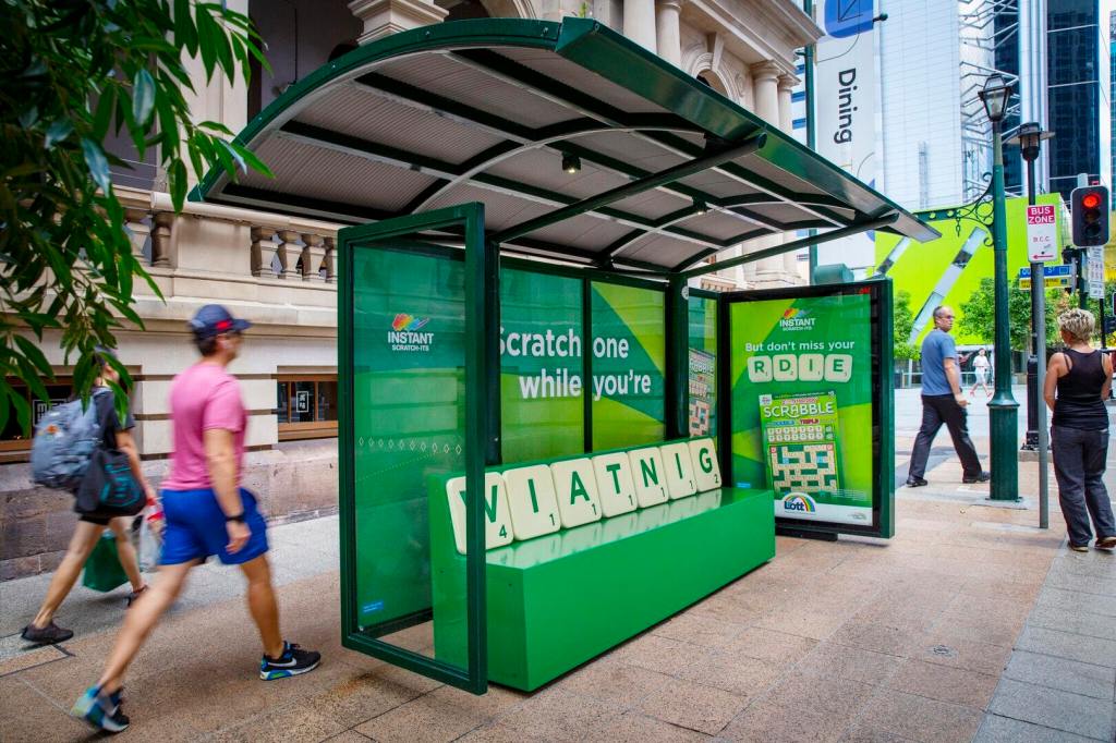 This special-build placed actual indoor rock climbing toeholds on an adshel.